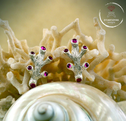 Pendientes de plata coral con gemas, Pendientes novia corales, Regalo Día de la Madre, Joyería del mar, Joyería novia bohemia