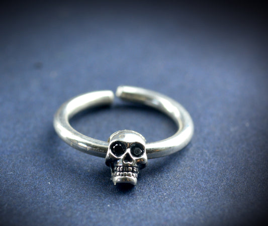 Aro para nariz con calavera pequeña de plata de ley , Septum, joyería punk