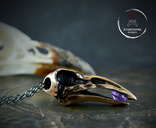 Colgante cuervo Plata 925, Cráneo de cuervo plata, Colgante artesanal, Colgante talisman, Joyería gótica, Colgante plata hombre