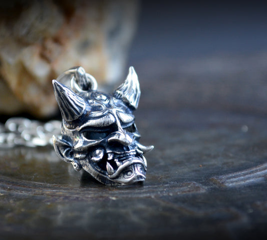 Colgante Oni Hannya en Plata Esterlina | Máscara Japonesa Hecha a Mano | Joyería Artesanal | Amuleto Demonio Japonés