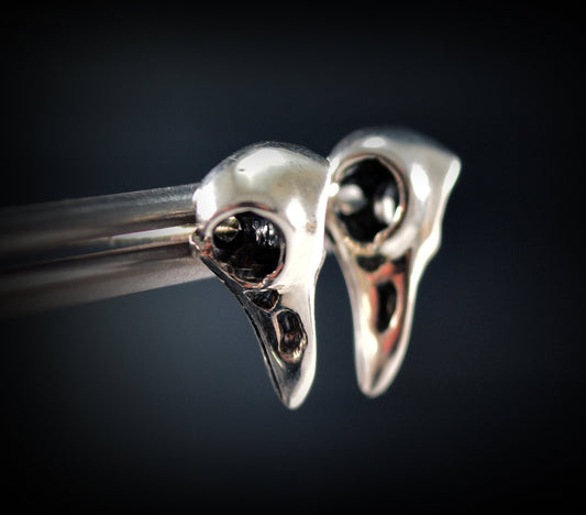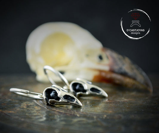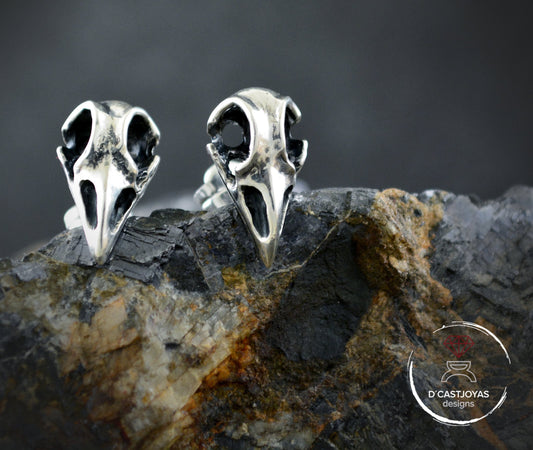 Pendientes cráneo de cuervo diminuto en plata de ley, Pendientes góticos , Pequeños pendientes vikingos