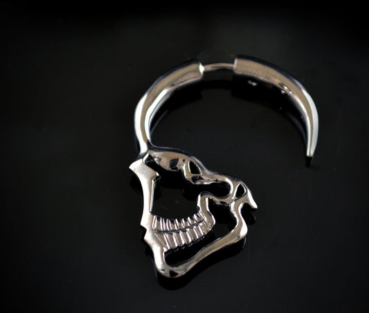 Pendiente de aro plata 925 calavera, Aro perfil calavera, Falso dilatador, Pendientes hombre, Joyería gótica. Pendiente artesanal
