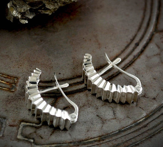 Pendientes plata de medio aro, Aros en zigzag, Joyería contemporánea, Regalo para ella, Estilo minimalista, Pendientes hechos a mano