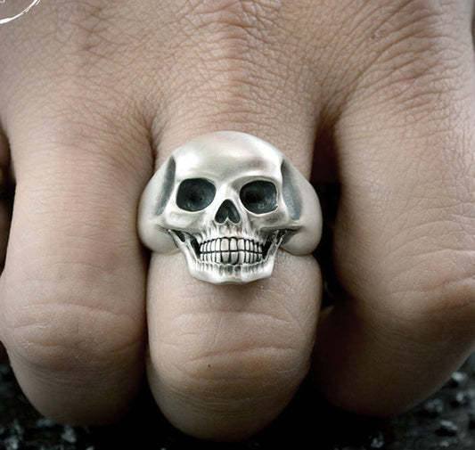 Massiver 925 Silber Totenkopf Ring, Herren Totenkopf Ring, menschlicher Totenkopf Ring, Biker Ring, handgefertigt, Memento Mori