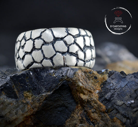 Sterlingsilberring mit Schlangenhauttexturen, oxidierter Silberring für Männer, handgefertigter Ring, urbaner Schmuck