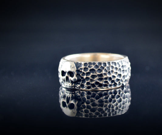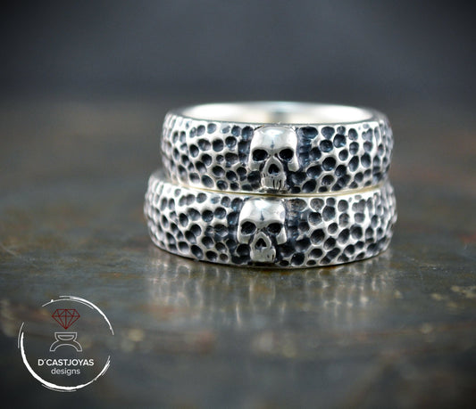 Totenkopf-Ringe, gehämmerter silberner Ehering, Totenkopf-Ehering, Biker-Ehering, Gothic-Ehering, Punk-Freundin-Geschenk