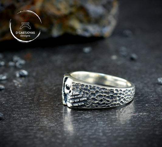 Ring mit Totenkopf, Allianz aus gehämmertem Silber, Totenkopf-Allianzen, Biker-Allianzen, Gothic-Allianzen, Punk-Freundin-Geschenk
