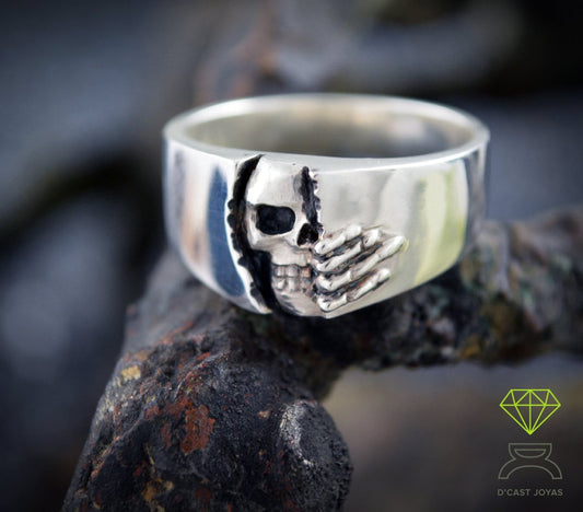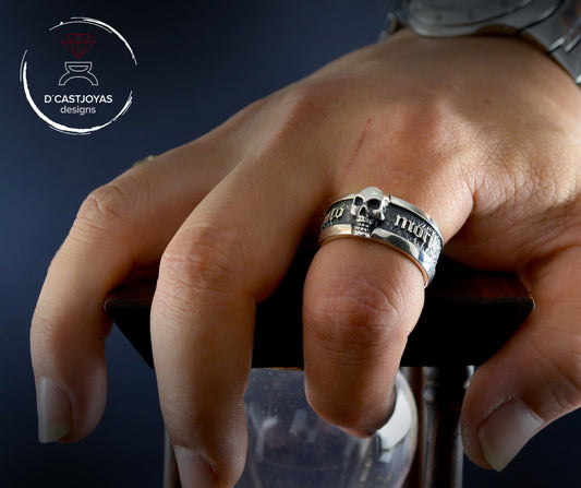 Memento Mori Bandring mit Totenkopf aus massivem Sterlingsilber, Totenkopfring für Herren