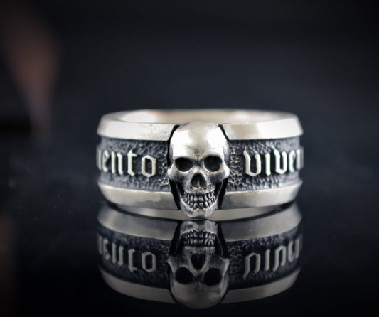 Memento Vivere Bandring mit Totenkopf aus massivem Sterlingsilber, Totenkopfring für Herren