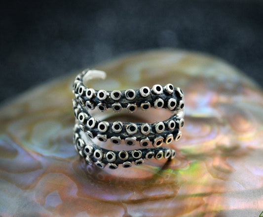 Oktopus Tentakel Silberring, Oktopus Tentakel verstellbarer Ring, handgefertigter Ring, Meeresschmuck