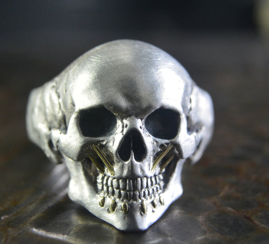 Handgefertigter Vollschädel-Anhänger aus 14-karätigem und 18-karätigem Massivgold