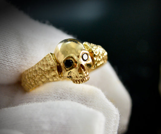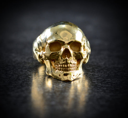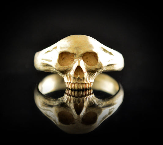goldener menschlicher Totenkopfring, handgemachter Totenkopfring aus 10k, 14k oder 18k Gold, Memento Mori Ring