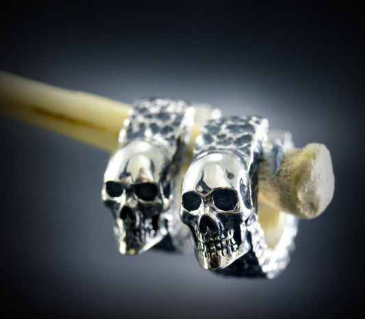 Gehämmerte Creolen mit Totenkopf, handgefertigte Silberohrringe