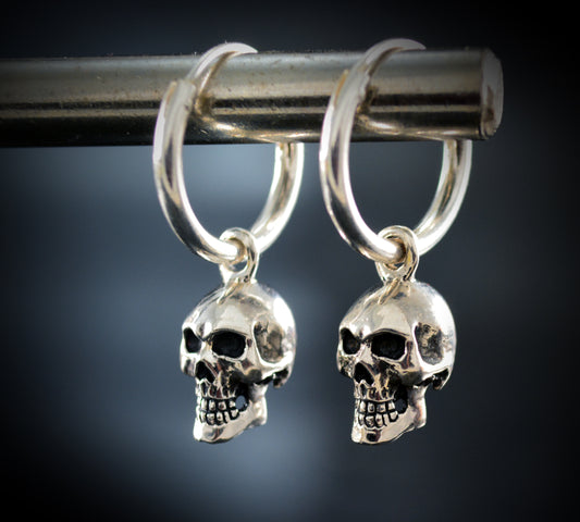 Creolen mit Totenkopf aus Sterlingsilber, Ohrringe für Männer und Frauen