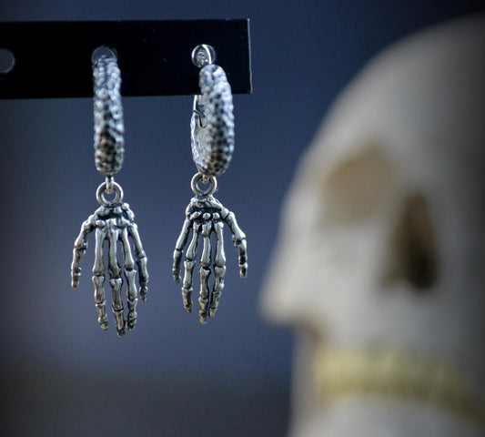 Aro con mano esqueleto en plata de ley 925 | Pendiente gótico unisex, joyería alternativa hecha a mano