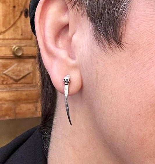 Pendiente colmillo de serpiente con calavera. Pendiente largo con calavera hecho a mano en plata
