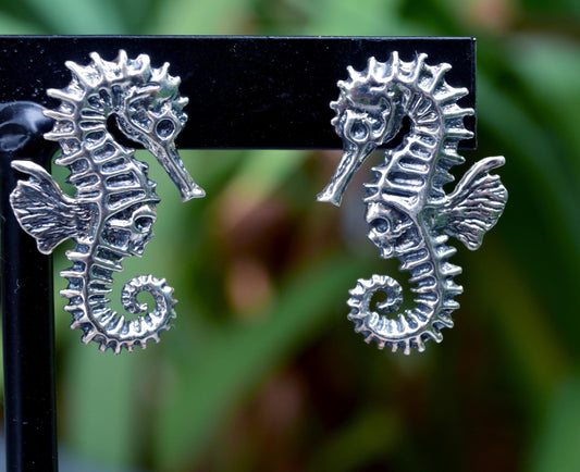 Pendientes caballito de mar con calavera en plata de ley – Joyería alternativa unisex | Gótico oceánico, punk, talismán hecho a mano