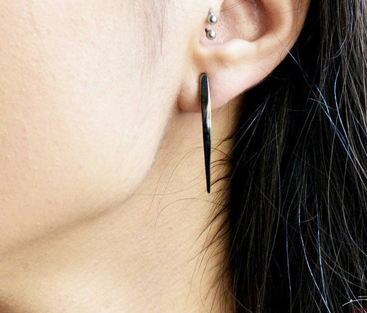 Silberne Schlangenzahn-Ohrringe, lange Nadelohrringe, handgefertigte Ohrringe, minimalistischer Schmuck, zeitgenössischer Schmuck