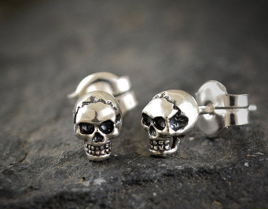 Winzige Totenkopf-Ohrringe aus Sterlingsilber für Männer und Frauen