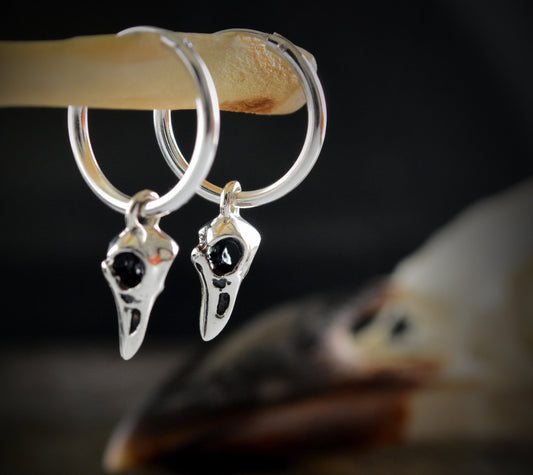 Winzige Rabenschädel Ohrringe aus Sterlingsilber, Gothic Ohrringe, kleine Wikinger Ohrringe