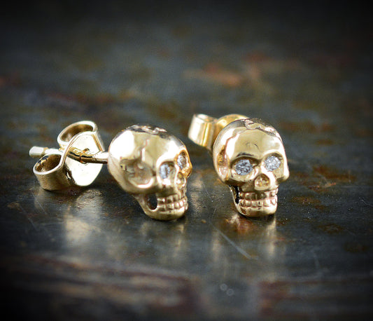 Winzige Totenkopf-Ohrringe, handgefertigt aus 10-karätigem, 14-karätigem oder 18-karätigem Gold, Herrenohrringe