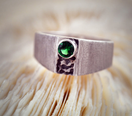 Massiver gerader Bandring aus Silber, Rubin-Solitärring, Herren-Ehering, handwerklicher Ring, handgefertigter Ring, zeitgenössischer Schmuck