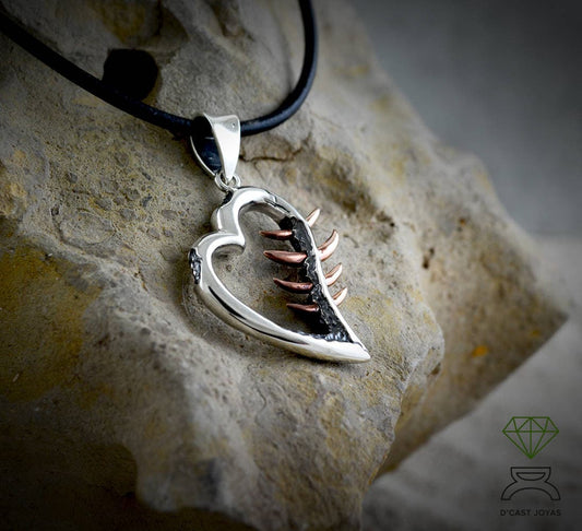 Dornen-Herz-Anhänger, massive Silber-Herz-Halskette und gekreuzte Dornen in Bronze, gebrochene Herz-Halskette