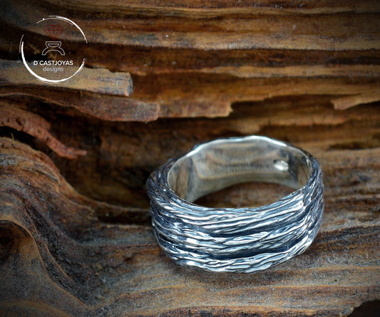 Massiver rustikaler Bandring aus 925er Silber, Herren-Bandring, Original-Allianzen, Ring aus oxidiertem Silber, handgefertigter Ring