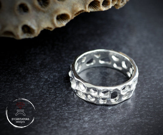 Allianz aus 925er Silber, rustikaler Bandring mit Löchern, organischer Seering, Unisex-Eheringe, Boho-Stil, handgefertigt