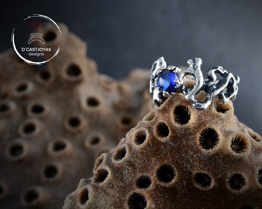 Solitärring aus Korallensilber, Meeresschmuck, handgefertigter Ring