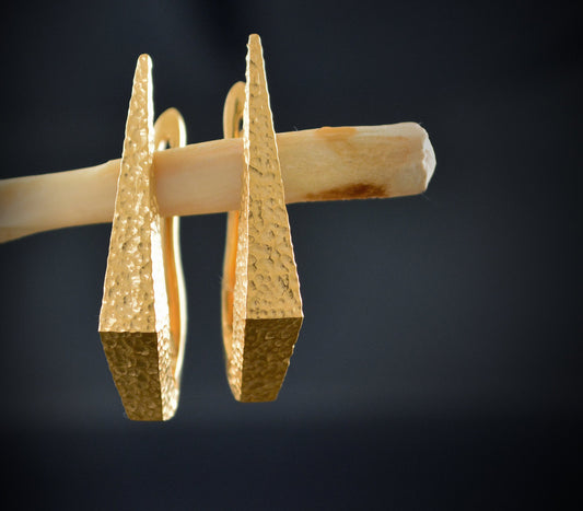 Silberne Dolchohrringe mit Goldplattierung und gehämmerter Textur, handgefertigter Ohrring