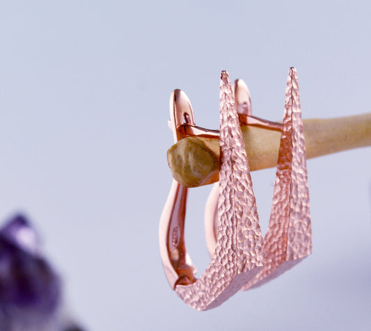 Silberne Dolchohrringe mit Roségoldplattierung und gehämmerter Struktur, handgefertigter Ohrring