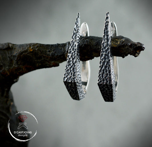 Dolchstein-Silber-Creolen, handgefertigte Ohrringe, 925er Silber-Hakenohrringe, Punk-Schmuck, zeitgenössischer Schmuck, Gothic-Braut