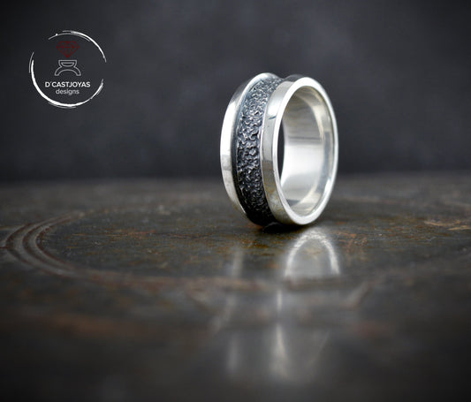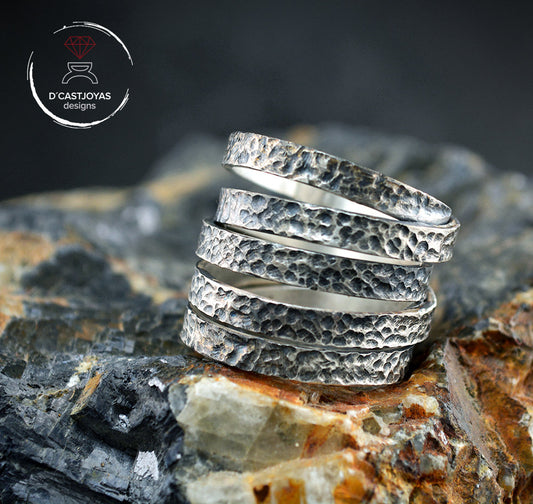 Rustikaler 925er Silberring mit gehämmerten Texturen, Ehering für Herren, zeitgenössischer Schmuck, Ring im urbanen Stil, handgefertigter Ring