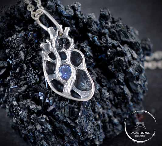 Anhänger aus Sterlingsilber mit natürlichem Tansanit, menschlicher Herzanhänger mit natürlichem Rubin, besonderes Geschenk zum Muttertag