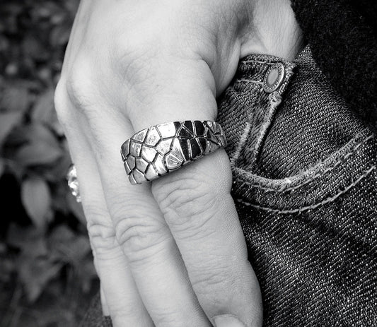 Sterlingsilberring mit Schlangenhauttexturen, oxidierter Silberring für Männer, handgefertigter Ring, urbaner Schmuck