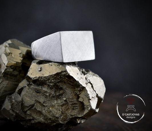 Rechteckiger Silberring, Siegelring aus Silber, geometrischer Herrenring, Unisex-Schmuck, zeitgenössischer Schmuck, minimalistischer Stil