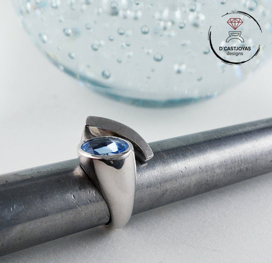 Augen-Silberring, Solitärring mit großem ovalem Stein, handgefertigter Ring, zeitgenössischer Schmuck, Damen-Silberring, Urban-Stil