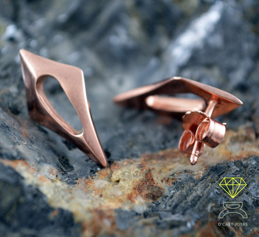 Zwei Rauten-Silberohrringe, kleine Silberohrringe, minimalistischer Schmuck, roségoldene Raute, handgefertigte Ohrringe