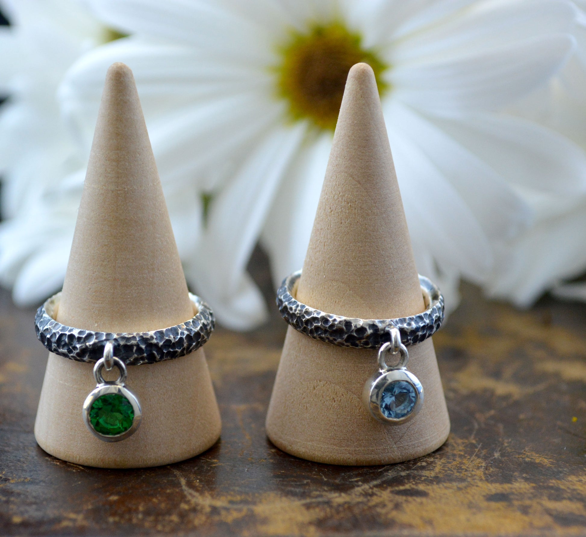 Gota Viva – Anillo de plata martillada con piedra colgante