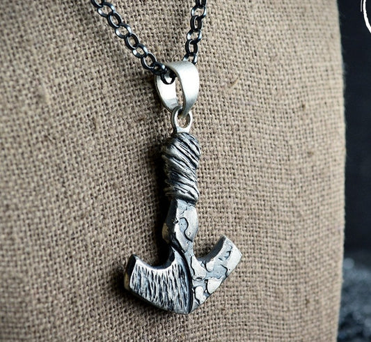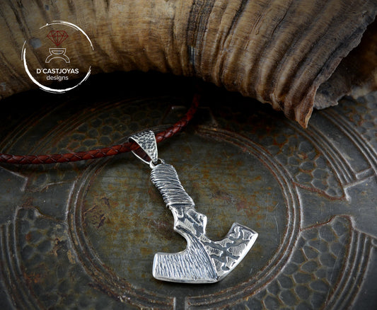 Modern Thor ax 925 silver pendant with hammered textures, Men's pendant talisman, New Viking jewelry