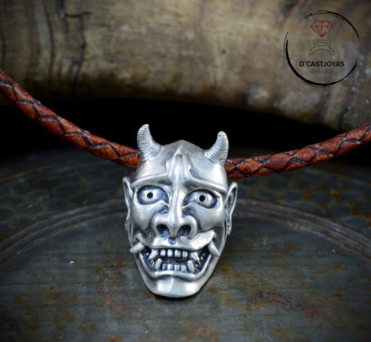 Colgante Oni Hannya en Plata Esterlina | Máscara Japonesa Hecha a Mano | Joyería Artesanal | Amuleto Demonio Japonés