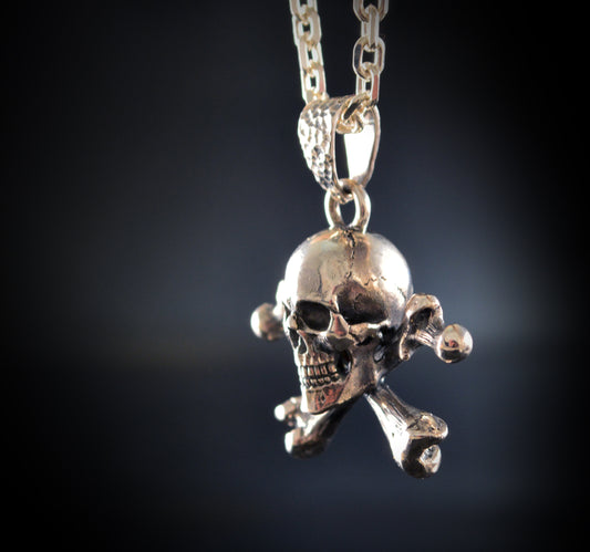 Silver Skull and Crossbones Pendant, Jolly Roger Necklace, Realistic Pirate Skull, Memento Mori