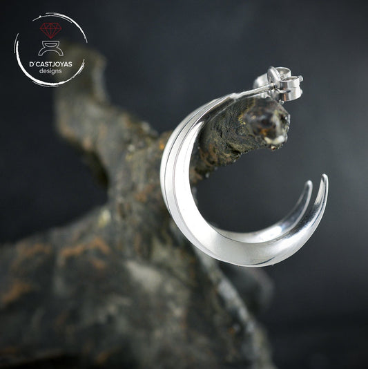 Half moon earrings, 925 silver hoops, Crescent moon earrings, Minimalist, Contemporary jewelry, Urban style, Handmade