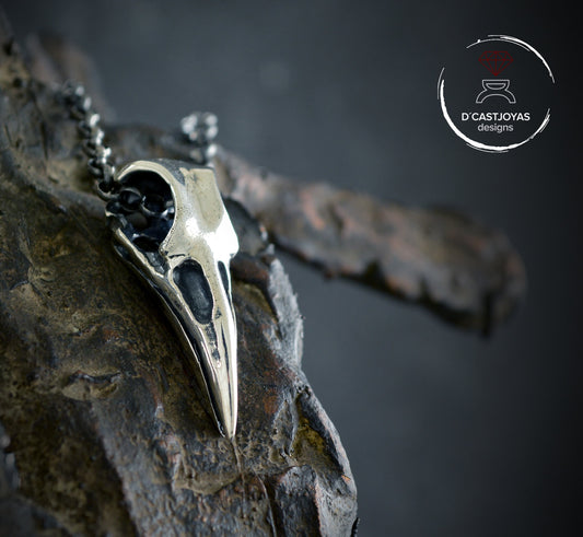 Gran craneo de cuervo en plata de ley, Collar vikingo craneo de pajaro