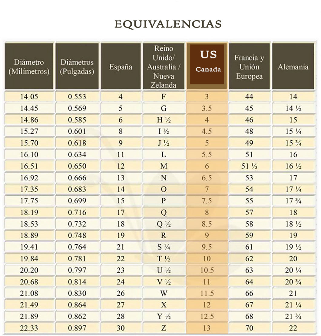***NOTA IMPORTANTE: usamos la escala americana de tallas de anillo. En las imágenes dispones de una tabla de equivalencias